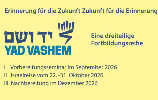 Der SWL hat im Jahre 2010 in Kooperation mit der Landeszentrale für politische Bildung Baden-Württemberg und der International School for Holocaust Studies in Yad Vashem eine dreiteilige Fortbildungsveranstaltung zu diesem Thema höchst erfolgreich durchgeführt. Sie haben die Möglichkeit, die Dokumentation dieser Veranstaltung hier herunterzuladen. Eine Wiederholung dieser Veranstaltung ist vorgesehen.